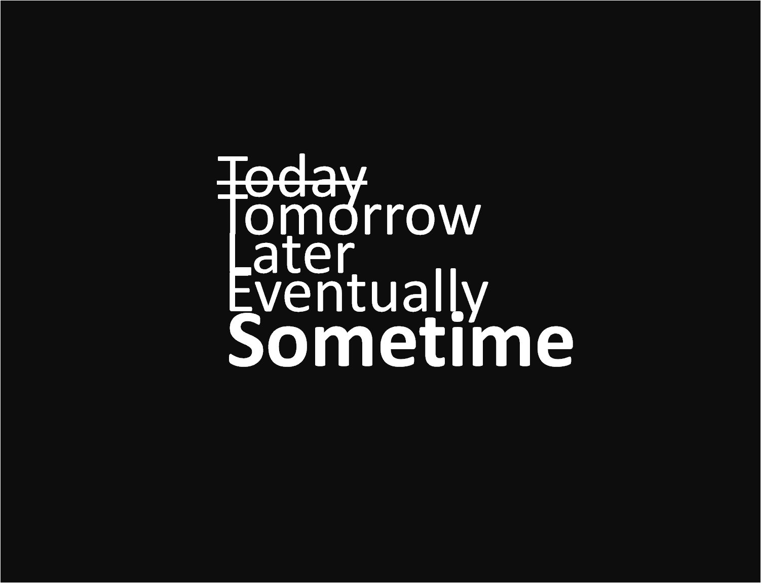 We may procrastinate because, as is the case with my final project, we feel overwhelmed or intimidated by the task at hand. Or maybe, we’re just apathetic or lazy. It’s one thing to manage our time and have a specific time frame for the completion of specific tasks, but it’s another thing to put it off by saying “later”. The problem with procrastination is that it is a complete gamble. We are avoiding or neglecting something today and determining to do it at a later time that may or may not be given to us.